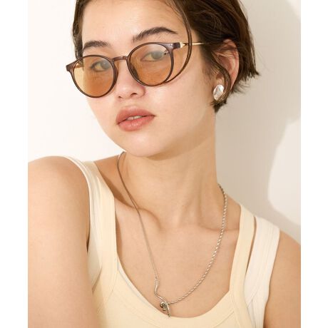 クリアフレームとカラーレンズの組み合わせが爽やかな印象を与えるボストングラス。メタルテンプルを採用することで、上品で洗練された雰囲気に。肌なじみがよく、どんなコーディネートにも合わせやすいので、いつものスタイリングにプラスするだけでトレンド感を演出できます。