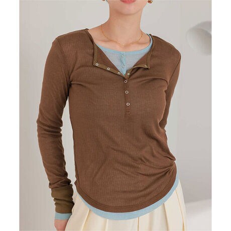 ・シアー感が可愛いヘンリーネックトップス。・重ね使いもオススメです。・コーディネートに馴染みやすいカラー展開。・スナップボタンもポイント。・柔らかい生地で着心地抜群。[型番:AFJR4521]