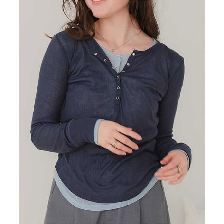 ・シアー感が可愛いヘンリーネックトップス。・重ね使いもオススメです。・コーディネートに馴染みやすいカラー展開。・スナップボタンもポイント。・柔らかい生地で着心地抜群。[型番:AFJR4521]