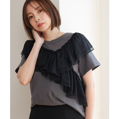 ボリュームのあるフリルがインパクトのあるTシャツはトレンド感もたっぷりで一枚スタイリングがお洒落に決まります!!
