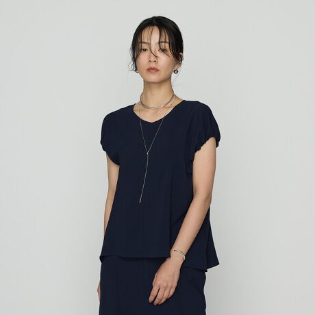 暑い夏でも一枚できちんと見せてくれるプルオーバーブラウスです。