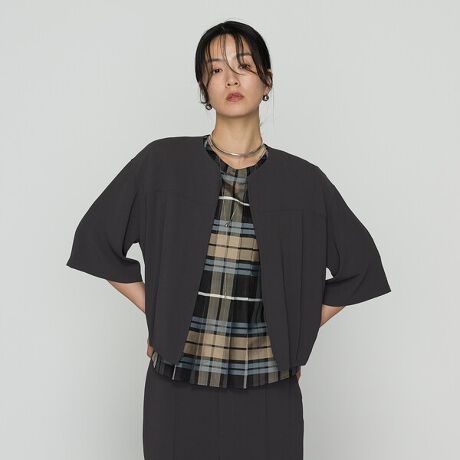 〔 TALLサイズ 〕 バックサテンジョーゼット ハーフスリーブブルゾン