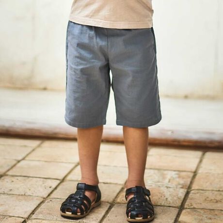 おしりポケットにポイント使いしたリーフ柄と麻のような生地が夏らしいハーフパンツ。