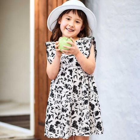 【お揃い】マルシェフルーツ柄楊柳フリルワンピース(90~150cm)