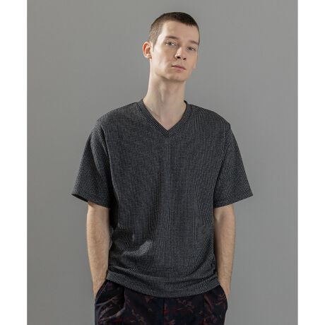 ベーシック半袖Vネックデザイン。ややゆとりのあるリラクシーなシルエット。素材を活かしたシンプルカットソー。ポリエステル、レーヨンの持つ清涼感から盛夏にまで長く使える。