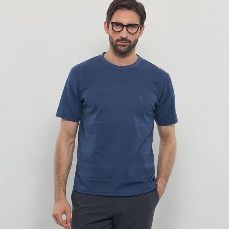 特徴的な生地を生かすオーセンティックなデザインのTシャツです。左胸にダンディマンの刺しゅうが入ります。1枚でご着用頂いても良いですが、ジャケット、アウターのインナーにも最適な商品です。脇下にデオドラントテープを施すことで、消臭効果も付与しています。