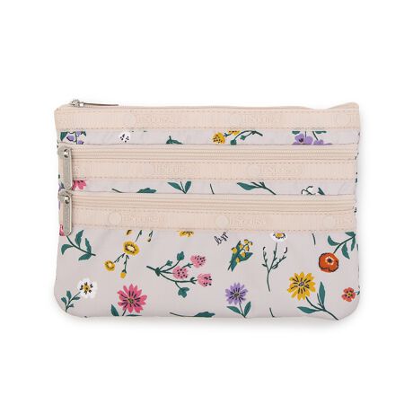 フラットな3段ジップポーチです。深さの違う3つのポケットで細かいものの整理が簡単に。コスメポーチとしてはもちろん、ペンケースやお財布、パスポートケースなど日常使いから旅行まで幅広い用途でお使いいただけます。バッグの隙間にストンと入るスリムさで持ち運びも便利。