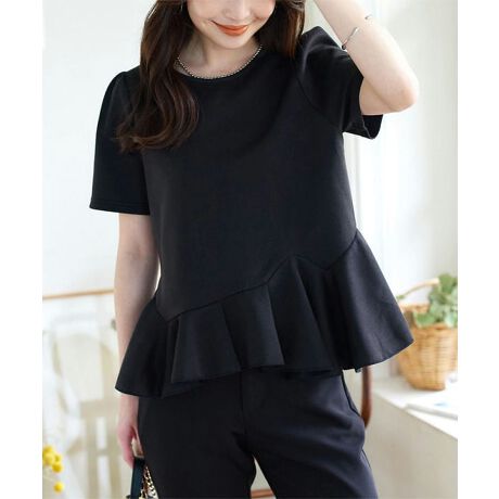 女性らしい柔らかな雰囲気を引き出し、品のある華やかさを与えてくれるペプラムTシャツです。