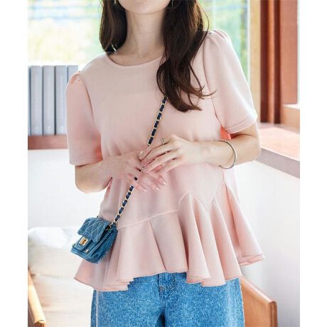 女性らしい柔らかな雰囲気を引き出し、品のある華やかさを与えてくれるペプラムTシャツです。