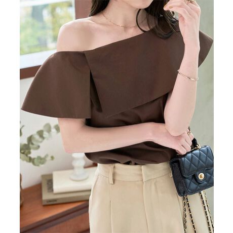 ふんわりとしたシルエットで優しく包み込み、女性らしさを引き立てるオフショルケープブラウス。