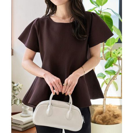 ウエストから裾にかけてのペプラムラインと、肩にさりげなくボリュームを持たせたフレアスリーブが、リラックス感のあるナチュラルな女性らしさを引き立ててくれます。