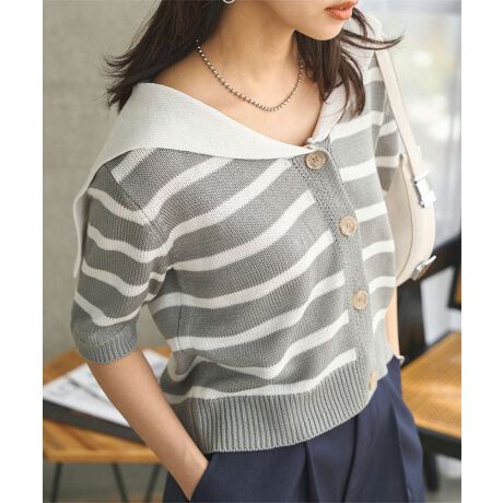 大きな襟やボーダーのバイカラーデザインがマリンテイストな爽やかさ際立たせるアクセント。