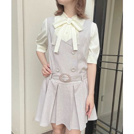 トレンドライクなローウエスト切り替えのジャンパースカート。