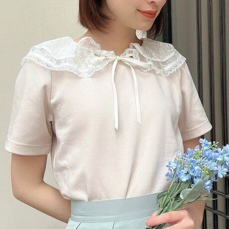 レースフリルの衿がガーリーなカットトップス。