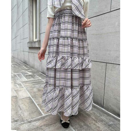 【セットアップ可能】【洗える】チェック ティアード ロング スカート