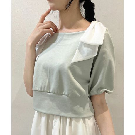 肩にあしらったシアーリボンがキュートなトップス。