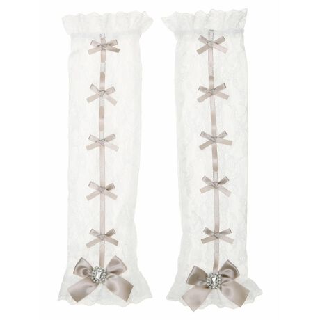 レースにリボンやビジューをデコレーションした心ときめくアームカバー。