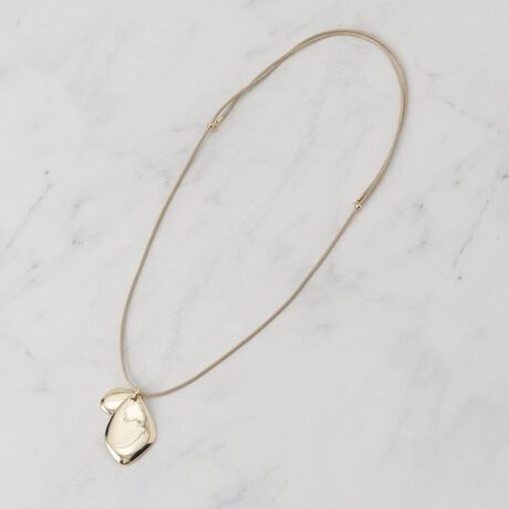 [型番:C7082057]【デザイン】2枚合わせの動きのあるメタルモチーフがポイント。コード紐使いがカジュアルな雰囲気を演出。【機能性】スライダーで長さ調整可能【カラー】006 シルバーカラーメッキ ブラックコード007 ゴールドカラーメッキ ベージュコード※照明の関係により、実際よりも色味が違って見える場合があります。また、パソコン・スマートフォンなどの環境により、若干製品と画像のカラーが異なる場合もございます。