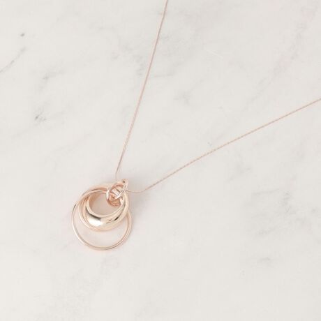 リングモチーフが洗練された印象を与え、シンプルながら個性を引き立てます。
