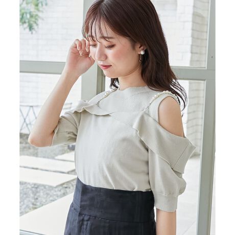 大人気の2wayパールチェーン肩開きニットが半袖になって登場!