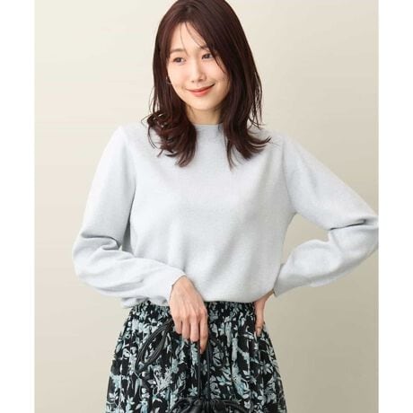 キラキラと繊細に光るきれいめな総針のニットプルオーバー。首が隠れるモックネックデザイン。シンプルながらもラメの輝きでコーディネートのアクセントに。