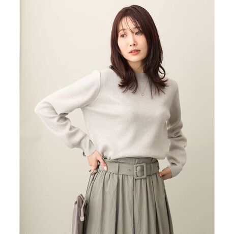 キラキラと繊細に光るきれいめな総針のニットプルオーバー。首が隠れるモックネックデザイン。シンプルながらもラメの輝きでコーディネートのアクセントに。