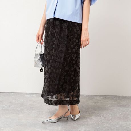 ・1枚でもレイヤードでも楽しめるスパンコールが華やかなスカート