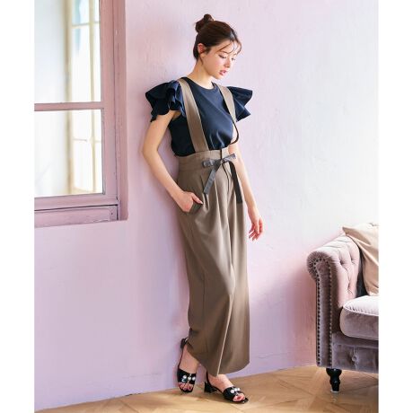 着こなしの幅が広がるサスペンダー付きセミワイドパンツ。サスペンダーは取り外し可能でカジュアルからきれいめまで自在にアレンジできます。ウエストにはさりげなく映える微配色のリボンを施し、シンプルなシルエットに程よいアクセントをプラス。ウエストマークすることでスタイルアップ効果も叶い、脚を長く見せてくれます。マニッシュな雰囲気漂うグレーとブラウンの2色展開はトレンド感がありつつも上品な印象に。カジュアルシーンでは特に活躍する万能パンツです。