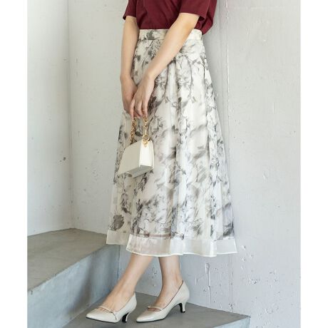 【WEB・一部店舗限定】ハッチングフラワープリント スカート