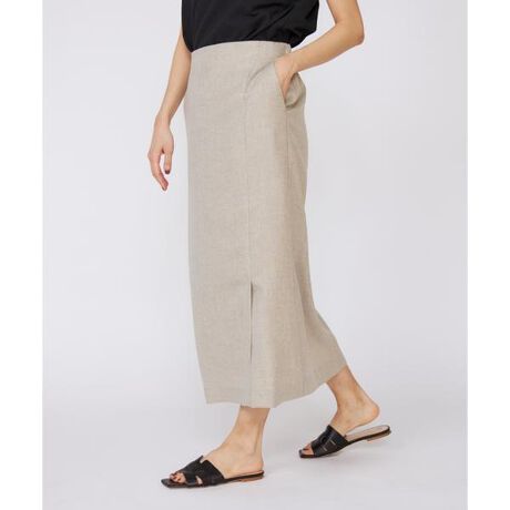 ■デザインミニマルな美しいフォルムと膝が隠れるミディ丈でエレガントな印象に。ラップ風のタックを施したデザインで、タック奥に入った深めのスリットが足元に抜け感を演出しています。オフィスからデイリーシーンまで幅広いコーディネートに活躍してくれる上質なアイテム。同素材のジャケットやブラウスと合わせるのもおすすめです。■素材天然の麻の生成りのような深みのある色合いと表情で、麻調合繊の代名詞として知られるアイアス。トリアセテートは森林を守る為のFSC®認証を取得したサスティナブル素材です。ナチュラルな風合いながらもシワになりにくく、吸湿速乾性もあります。・ポケットあり ・裏地あり・後ろウエストゴム仕様・水洗い可同素材のジャケット品番:7152141832同素材のブラウス品番:7152182832■サンプル撮影商品■こちらの商品はサンプルでの撮影となっております。実際の商品とは、サイズや色味、素材、デザイン等の仕様が若干変更になる場合がございます。
