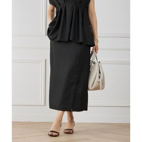 ■デザインミニマルな美しいフォルムと膝が隠れるミディ丈でエレガントな印象に。ラップ風のタックを施したデザインで、タック奥に入った深めのスリットが足元に抜け感を演出しています。オフィスからデイリーシーンまで幅広いコーディネートに活躍してくれる上質なアイテム。同素材のジャケットやブラウスと合わせるのもおすすめです。■素材天然の麻の生成りのような深みのある色合いと表情で、麻調合繊の代名詞として知られるアイアス。トリアセテートは森林を守る為のFSC®認証を取得したサスティナブル素材です。ナチュラルな風合いながらもシワになりにくく、吸湿速乾性もあります。・ポケットあり ・裏地あり・後ろウエストゴム仕様・水洗い可同素材のジャケット品番:7152141832同素材のブラウス品番:7152182832■サンプル撮影商品■こちらの商品はサンプルでの撮影となっております。実際の商品とは、サイズや色味、素材、デザイン等の仕様が若干変更になる場合がございます。