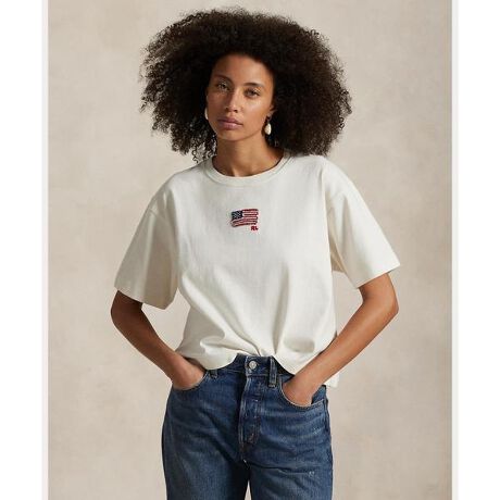 シグネチャーのPoloスタイルを体現するコットンジャージーのTシャツ。ウィップステッチで施した歴史を感じさせる星条旗のクロシェ編みのアップリケバージョンとモノグラムのロゴ刺繍をフロントにあしらった一枚・クロップド丈、ボクシーフィット / 腰上丈・クルーネック / 半袖 / ドロップショルダー・フロント中央に、ウィップステッチで施した歴史を感じさせる星条旗のクロシェ編みのアップリケとRLの刺繍・Ralph Laurenのコットン製品を選ぶことで、環境の保護と修復に努めながら、コットン業界が今後も成長を続けられるように支援するBetter Cotton(TM)ミッションへのRalph Laurenの取り組みをサポートすることになります・本商品は物質収支方式に則って材料を調達しているため、全ての製品にBetter Cotton(TM)が含まれない可能性があります。・モデル身長178cm、着用サイズS※商品の色味は、光のあたり具合など諸条件により色感が多少異なって見える場合がございますので予めご了承下さい。 【素材】・本体:綿 100% 装飾部分を除く【生産国】インド