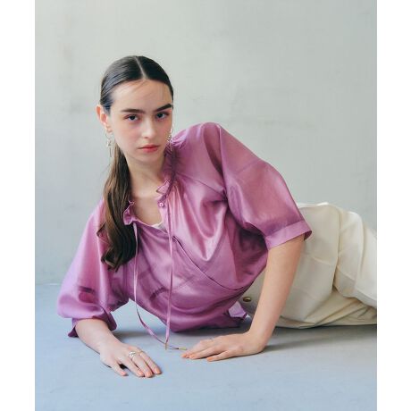 程よいふくらみのバルーンスリーブが華やかなシアーシャツ。
