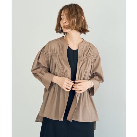 たっぷりと寄せたギャザーが目を惹く7分袖シャツ。ペーパー加工を施したオーガニックコットンを使用し、さらりとした着心地の良さが魅力です。ゆったりしたシルエットに前後差をつけたテールロングヘムがこなれ感のあるデザインです。シンプルなワンカラーながらも一枚で着映えを叶えてくれるおすすめのトップスです。