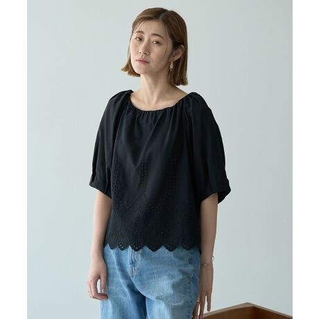 アイレット刺繍が目を惹くデザインブラウス。