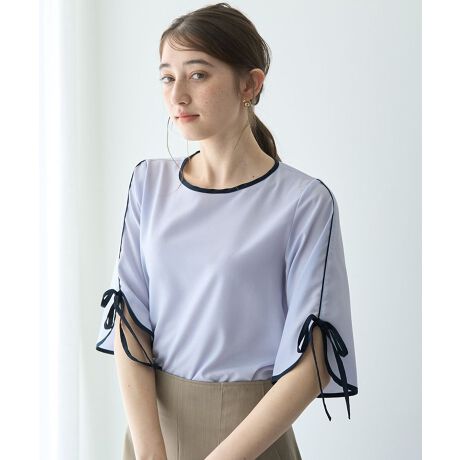 袖のリボンディテールが今年らしいフェミニンなブラウス。