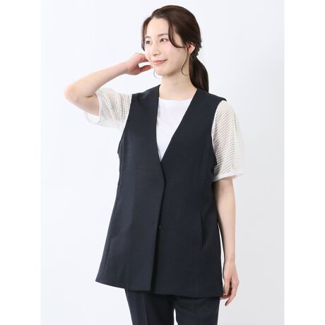 すっきりとしたVカラーでマニッシュな雰囲気に仕上げたロングジレです。シンプルなトップスの上に重ねるだけで、一気に新鮮な印象へとアップデートしてくれます。合わせるインナー次第でロングシーズン着回しが可能です。