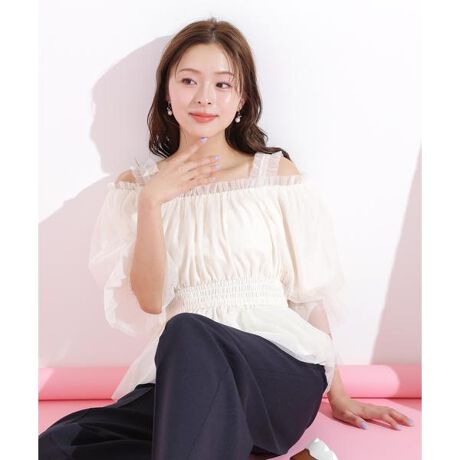 トレンド継続中!チュールの華やかトップス。取り外し可能なギャザーフリルの肩紐で鮮度アップするデザイン。インナーの肩紐が隠れるので安心して着こなせます。レディムード抜群なデコルテ見せでヘルシーなコーディネートを楽しめます。※撮影時照明の関係により、色味が違って見える場合がございます。またパソコン・スマートフォンなどの環境により、若干製品と画像のカラーが異なる場合もございます。予めご了承ください。商品の色味は、商品単品画像をご参照下さい。※商品画像はサンプルのため、色味やサイズ等の仕様に変更がある場合がございますので、予めご了承ください。