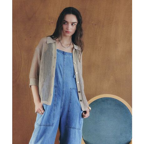 今季注目のペーパーヤーン素材で仕立てた襟付きメッシュカーディガン。