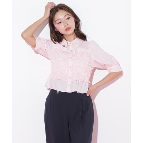 ビスチェ風シャーリングブラウス
