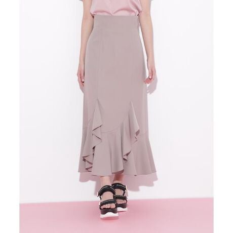 揺れるラッフルフリルが魅力のマーメイドスカート。柔らかでドレープ感のあるポリエステルツイル素材を使用しています。大人っぽいナローシルエットに、斜めの切り替えに挟み込んだフリルが、歩くたびに上品な揺れを演出します。後ろウエストはレースアップなので、ウエストをホールドしながらスタイルアップも叶います。※撮影時照明の関係により、色味が違って見える場合がございます。またパソコン・スマートフォンなどの環境により、若干製品と画像のカラーが異なる場合もございます。予めご了承ください。商品の色味は、商品単品画像をご参照下さい。※商品画像はサンプルのため、色味やサイズ等の仕様に変更がある場合がございますので、予めご了承ください。