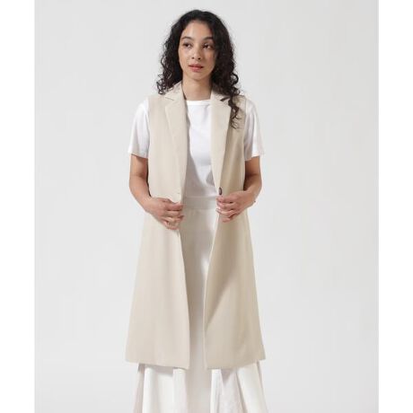 体型カバーも叶う釦付きのロングジレ。