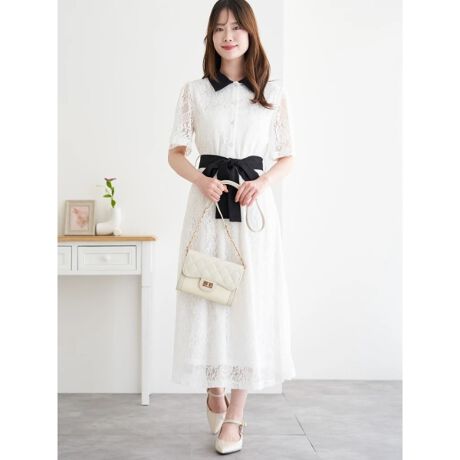 ・バイカラーの襟とウエストリボンがアクセントをプラスしてくれます。