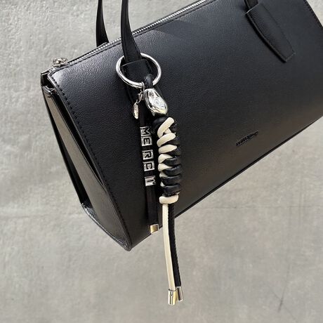 [型番:51515074021]【Design】「M・E・R・C・I」ロゴメタルがアクセントになったボリューミーなチャーム。ハンドメイド感のある編み込みデザインとメタリックパーツの組み合わせが、シンプルなバッグにトレンド感をプラスします。高級感のあるカラーリングで、ユニセックスに使える万能アイテム。バッグチャームとしてはもちろん、ギフトにもおすすめです。開閉リングの内径は3cmありますので、バッグのハンドルに装着しやすいです。