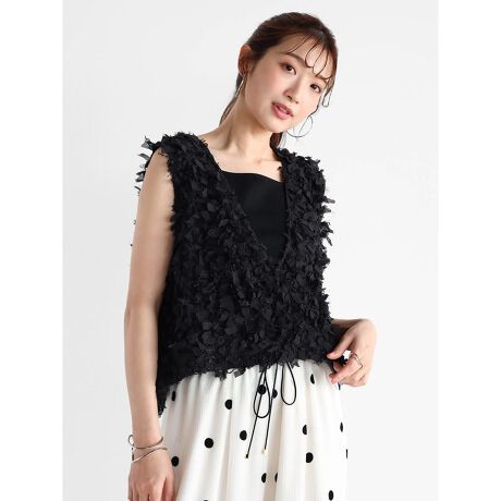 立体的なリボンフリンジが目を惹く、華やかなベスト。