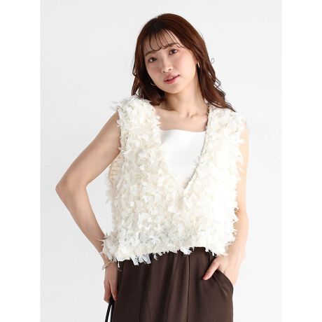 立体的なリボンフリンジが目を惹く、華やかなベスト。