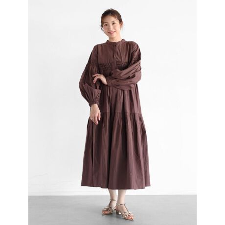 ハンドワークのスモッキング刺繍が目を惹くワンピース。