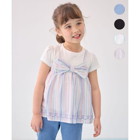 キッズ/半袖/刺繍/ハート/リボン/ドッキング/キャミソール/通園/通学/人気/デイリー/女の子/ガール/サスティナブル