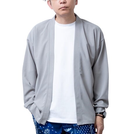 カーディガン メンズ 長袖 カットジョーゼット 涼しい ボタンレス カーデ 梨地 アムンゼン 春