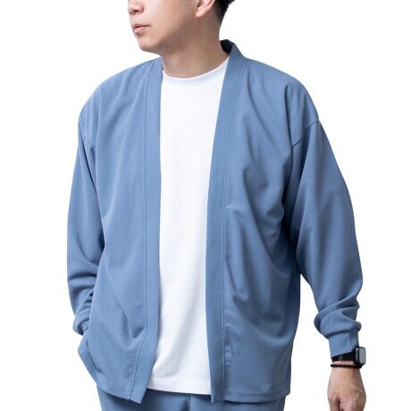 カーディガン メンズ 長袖 カットジョーゼット 涼しい ボタンレス カーデ 梨地 アムンゼン 春